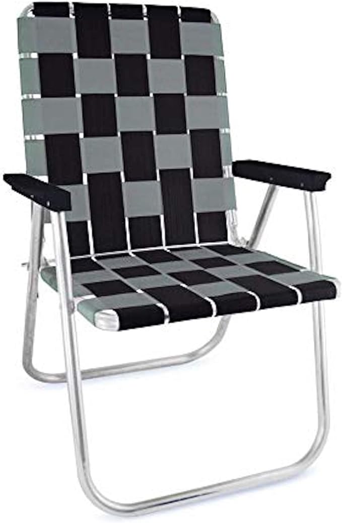 Lawn Chair USA Folding Aluminum Outdoor Patio Lawn Chair | Heavy-Duty Webbed Chairs for Camping, Sports, Beach, Yard & Tailgating | Lightweight Portable | Classic - Black/Silver