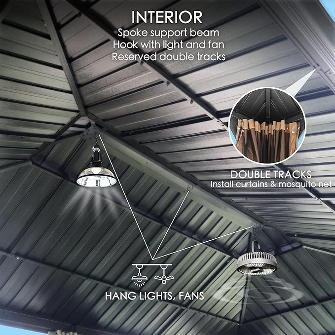 - ✅Perfect Size - Measuring 12' x 16', the gazebo offers ample space for you and your guests to relax and enjoy the outdoors.