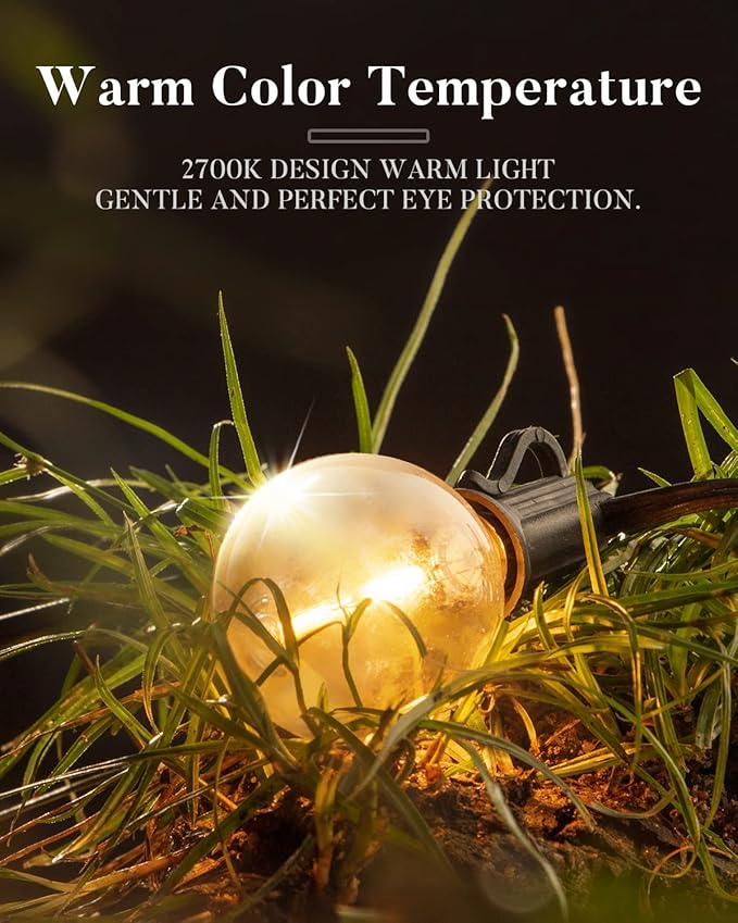 - 2025 NEW Upgrade💡200FT Outdoor LED patio string lights come with 100pcs 2W dimmable 2700K warm white Edison vintage shatterproof bulbs (Including 4 spare bulbs), 120V AC with UL polar plug, energy saving and safe. Ideal string lights for decorating your dinner place or Christmas and Halloween party, offer you a quiet and harmonious atmosphere and let you enjoy the family life and party bashing.