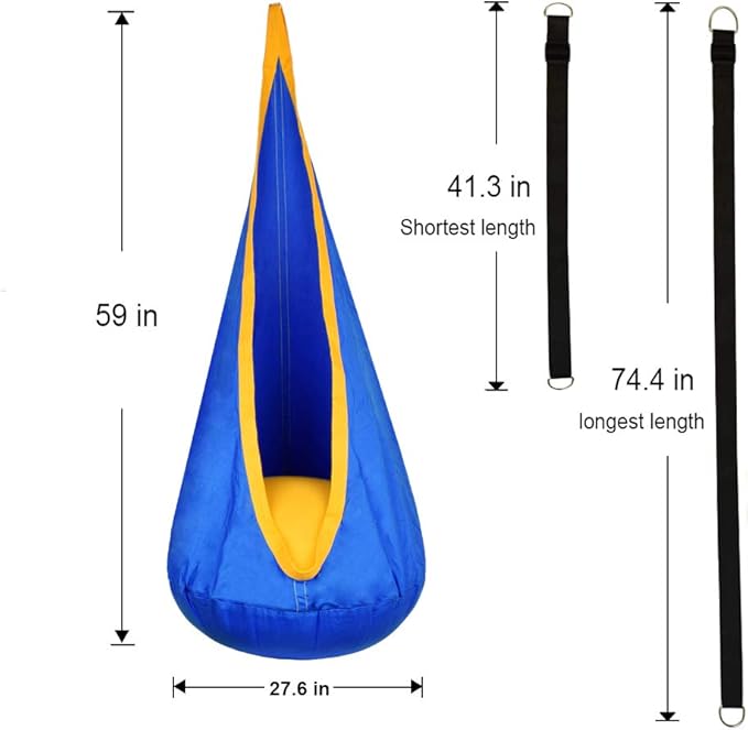- ★Hanging Pod Swing Seat Size –Indoor sensory swings approximately 27.6” in diameter x 59” in height .For children ages 2+.