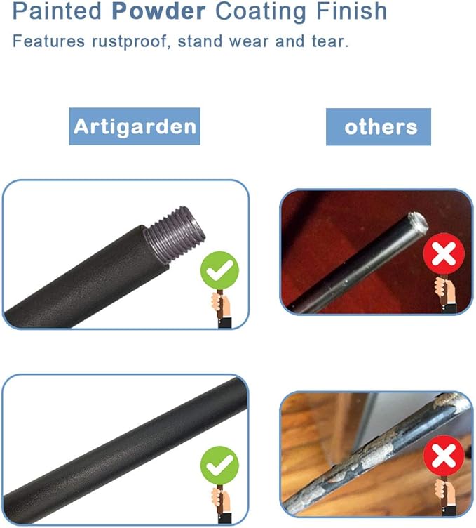 - Extendable & Tall Hook Hanger: The outside shepherd’s hook hanger made of 3/5 inch width & 2mm thickened steel pipe with 5 solid anchor points, you can free to adjust the suitable height for 108", 92", 76", 60" or 44", and also make it stands firmly in the ground without easily falling down, no fear of severe weather such as strong winds, heavy rains, and blizzards, (2 PACK / SET)