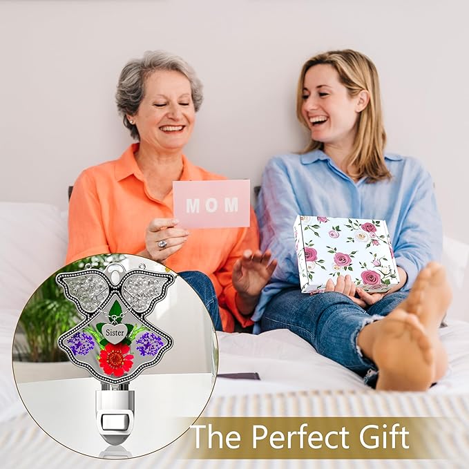 - ❤Attractive and Uniquely Designed :Perfect gift For sister for birthdays, Gifts for sister,Birthday gifts for women ,sister gift for christmas,Mother's day, sister gifts ,Valentine's Day,Sister Gifts from mother or sister, etc. Perfect gifts-As a festival home gift or decoration on mother`s day birthday christmas and other festivals,and you will receive a hand color box packing with a new angel night lights ,The new angel night lights carries a tag with " Sister" engraved on it.