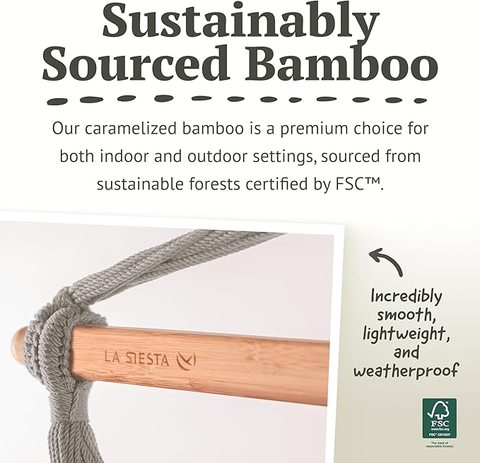- WEATHERPROOF FABRIC: La Siesta's hanging chair features weatherproof fabric for care-free relaxation in any environment. Quick-drying and easy to maintain, it's a perfect hanging swing chair for outdoor, patio, balcony, or garden.