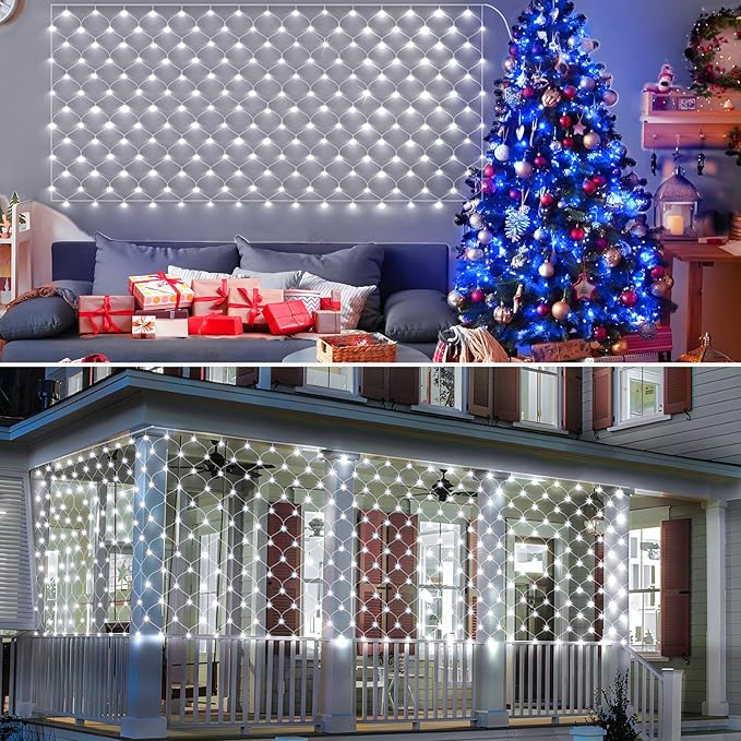 - Christmas Net Mesh Lights:The biggest advantage of this net light is its unique fishing net design and easy installation, saving you the hassle of winding decorations. Whether it's for lawns, shrubs, gardens, windows, or balconies, you simply need to spread out the net light and turn on the switch, and it will become a beautiful sight. The net light features a built-in fishing net shape, making it very eye-catching. Enjoy the charm and fun that this delightful net light brings you!