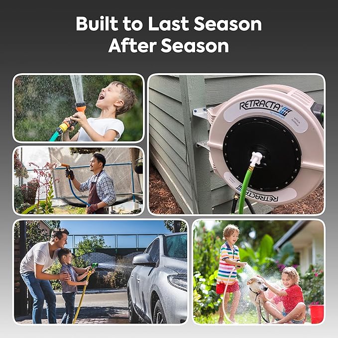 - Removable Reel for Winter Storage: This retractable outdoor hose features a quick release system for easy removal. Store this self-winding garden hose reel when not in use. Our heavy duty retractable water hose reel is designed to last season after season.
