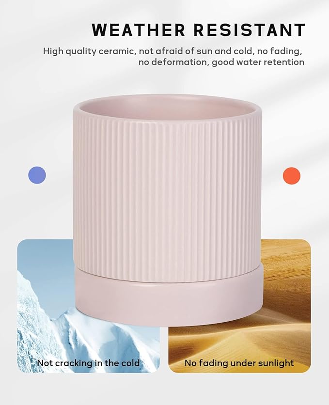 - 【With Drain Holes and Trays】The plant pots with drainage holes and saucers allow excess water to flow out, avoid overwatering, and keep plants perfectly hydrated. The snug-fitting ceramic plant tray won't stain your floors and tabletops.