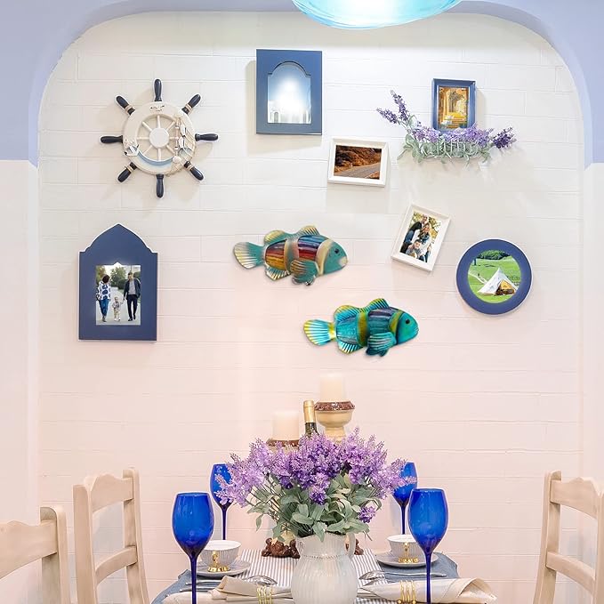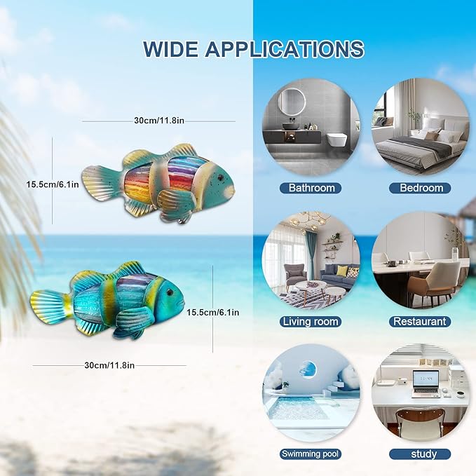 - 🎣【Coastal Wall Decor & Wall Art】: The metal fish can be used as Wall-hanging art, table-top displays, and welcome signs. Suitable for outdoor pool wall decor, fences, living rooms, decorating gardens, terraces, lawn, porch, gate, yard, balcony, wedding, party, beach.