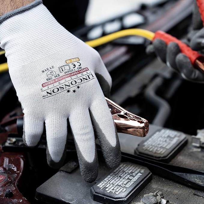 linconson 12 Pack Safety Performance Series Construction Mechanics Wrinkle Latex Work Gloves
