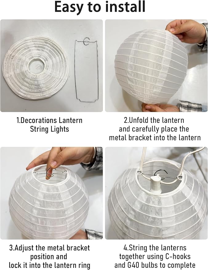 - 💭White Lantern String Lights: The chinese lantern string lights with a total length of 25 feet are plug-in lamp are brighter and more stable than solar/battery powered string lights, male plug spacing is 2 feet, lamp-to-lamp distance is 2.5 feet, tail plug distance is 0.5 feet