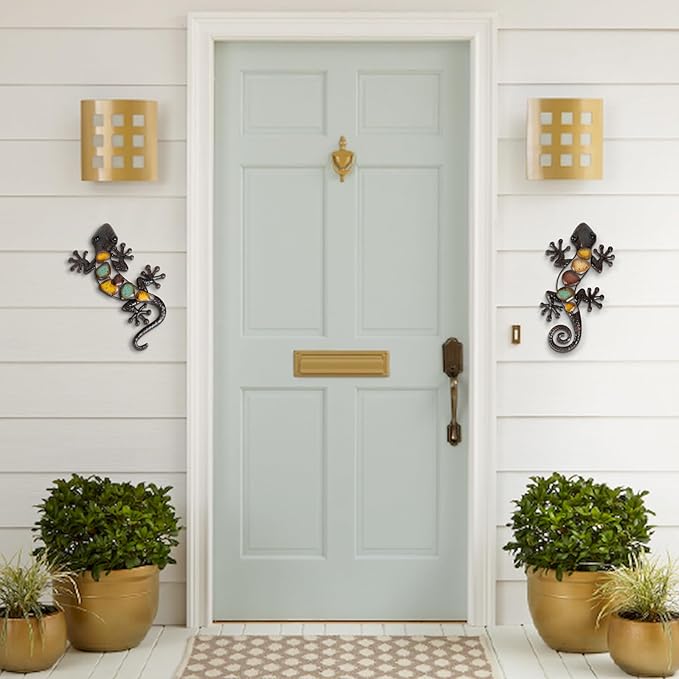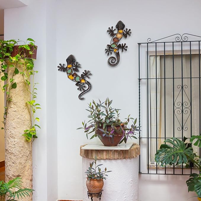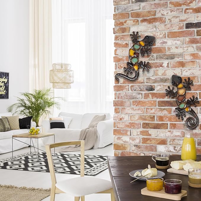 - A Pecfect Home Addition - Enhance your living space with this stunning set of Colorful Metal Gecko Wall Decor. Crafted with premium metal and a durable frame, these vibrant lizards will instantly liven up any room or outdoor area