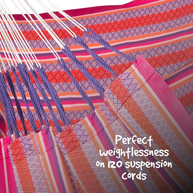 LA SIESTA - XL King Habana Cotton Hammock Chair & Romano Steel Stand - Indoor/Outdoor Hanging Chair Swing for Bedroom, Porch, Balcony - Boho Flamingo