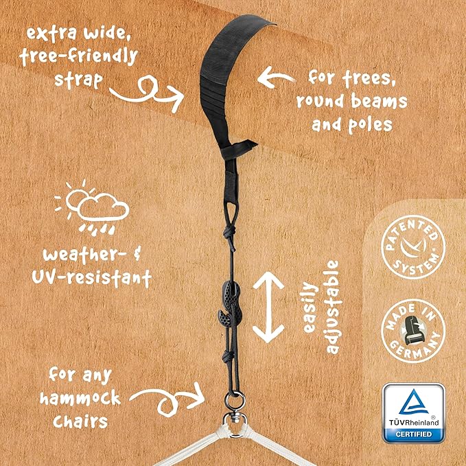 - TREE-FRIENDLY SUSPENSION: Designed for simplicity and indoor comfort, our hanging hammock chair includes tree suspension. Suitable for trees, round beams, and poles, making installation a breeze with our patented SmartHook for easy height adjustment. The extra-wide, tree-friendly straps ensure a secure and ideal suspension for your indoor relaxation.