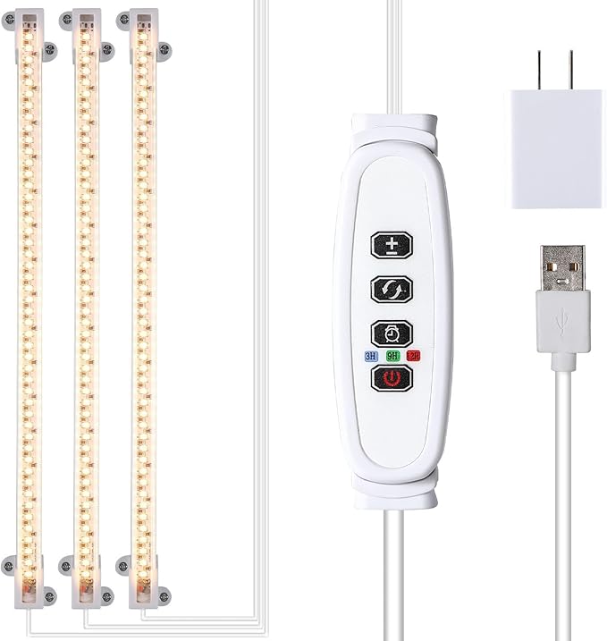 LED Grow Light Strips, Full Spectrum Plant Growing Lights for Indoor Plants 3000K, 144 LEDs Plant Lamp with 3/9/12H Timer, 10 Dimmable Levels, 3 Head 13 Inches