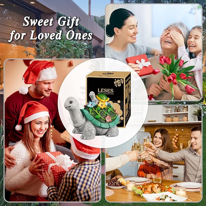 - Excellent Gift Choice: Turtle outdoor statues size: 8.5 "L x 5.1 "W x 6.5 "H. The solar garden light comes in a beautiful cartoon box, suitable for Mother’s Day, Thanksgiving, Christmas gifts. (Professional After-Sales Service: If you have any questions about the turtle law ornament, we will provide you with satisfactory service and solve the problem within 24 hours)