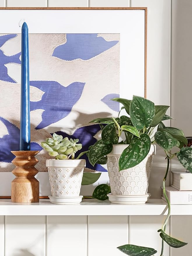 - Decor Any Corner: Discover a cute embossed design ceramic pots –3 inches in diameter and 2.1 inches top opening, good for planting mini succulents or cacti like Lithops or Sedum Rubrotinctum. They are so mini and cute, suitable to be placed on corner of window sills, dressers, nightstands as accents! Space saving, these dainty plant pots will be the tiny but special addition to your home