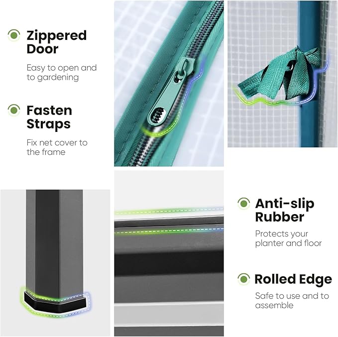 - 【Extending the Growing Season】Raised garden bed with cover allows plants to thrive during the winter and spring. Equipped with zippered doors for easy access, you can tend to your plants with great convenience. Featuring 2 mesh windows, they ensure proper air circulation while also protecting your plants from birds and other small animals.