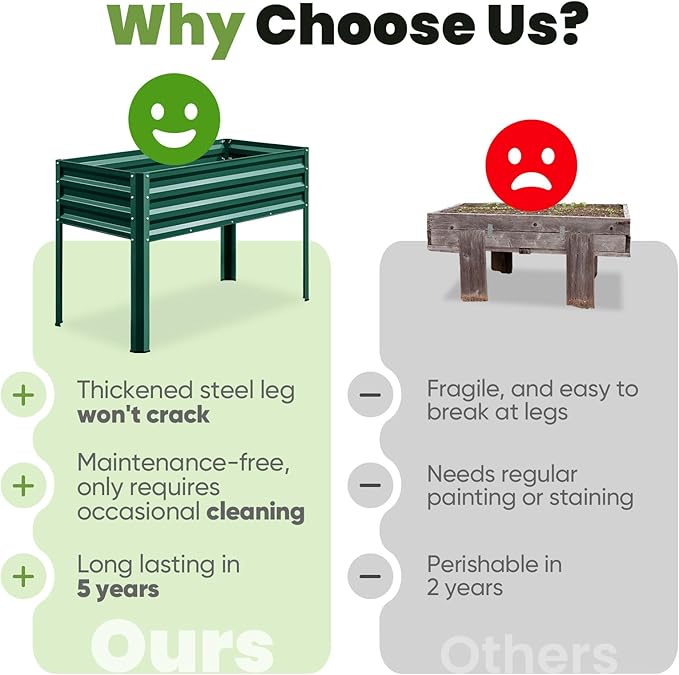 - 【Sturdy & Durable, Capacity: 400 lbs】Our galvanized steel planter raised bed is rust-resistant, sturdy, and can support up to 400 lbs. More durable than wooden raised garden bed kit, it ensures a longer lifespan without the worry of cracking or warping.