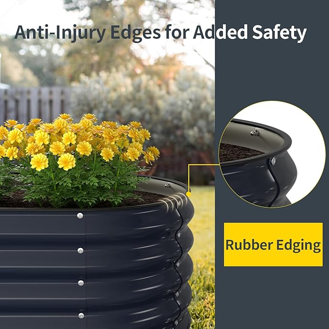 - Safe Rubber Edge:The top edge of the metal raised garden bed comes with a black rubber sealing edge for reinforcement as well as to prevent injury.The 18in depth reduces the stress of bending and the extra large growing space is perfect for most plants.