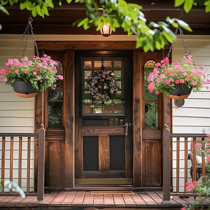 - 【Thicken Material 10 inch Hanging Plant Pots】Our plant hanging basket crafted from sturdy plastic, these 10 inch hanging planters withstand various harsh weather conditions for extended periods, ensuring planters withstand various climates and temperatures without fading or cracking, even during prolonged outdoor use. Lightweight and versatile self watering wall planter, each hanging baskets for plants set comes with two S-shaped hooks for easy installation.