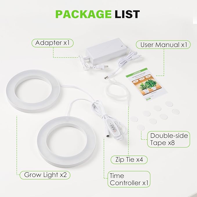 - High-tech LED Full Spectrum Grow Light: Our Halo Grow Light features 144 advanced LED chips that provide a longer lifespan and brighter illumination. The small grow light emits wavelengths ranging from 380nm to 800nm to cater to all plants and the combination of 24x2 warm white and 34x2 cold white LEDs ensures optimal eye care. With high-efficiency LED diodes and increased PAR output, this plant light enhances photosynthesis efficiency significantly.