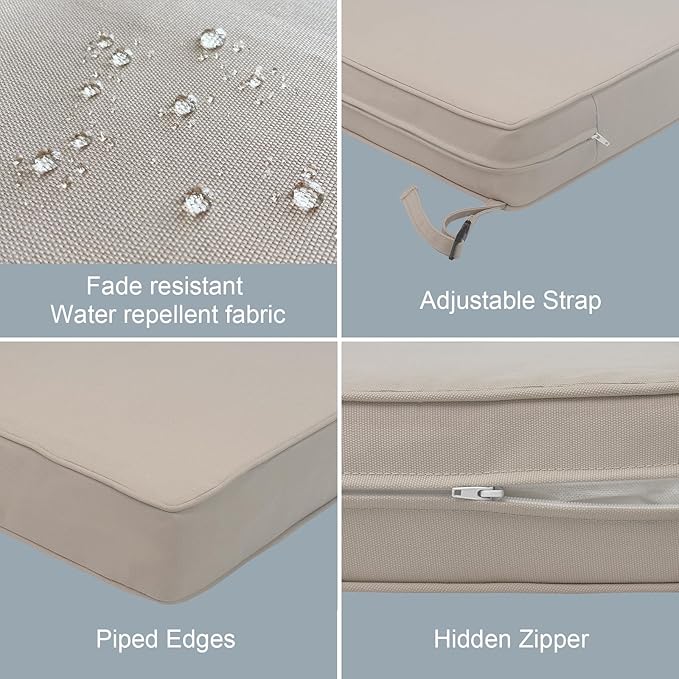 - NON-SLIP DESIGN: Each outdoor furniture cushion with adjustable straps help keep cushion securely attached to your chairs. You can sit back and relax without worrying about the cushions shifting or slipping