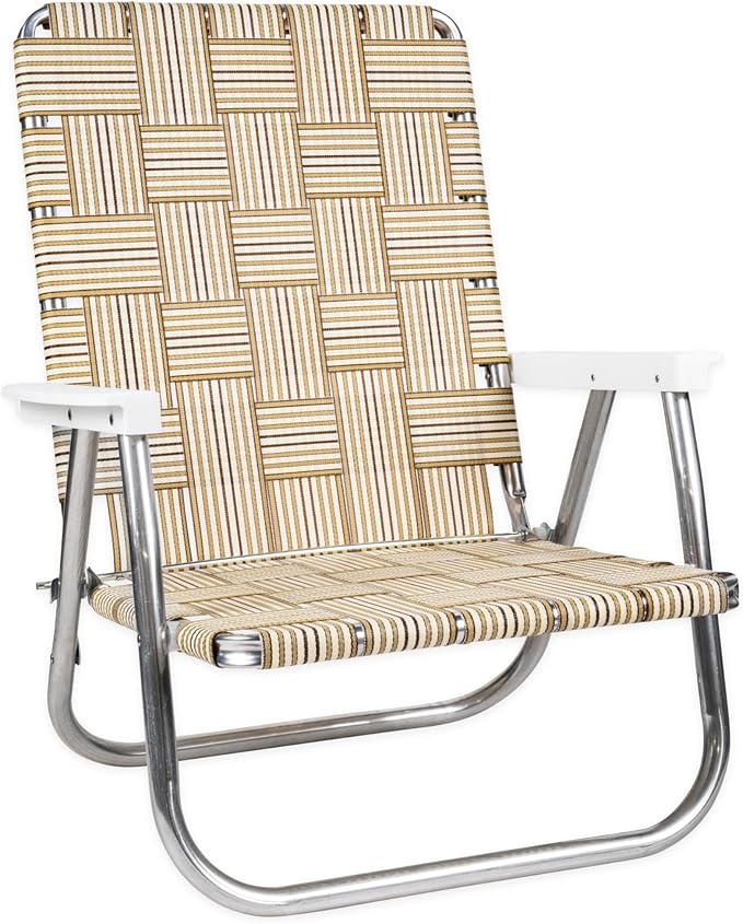 - Beach Perfect: The Lawn Chair USA Tan Stripe Beach Chair is your perfect partner for the beach, designed to withstand the sandy and salty conditions.