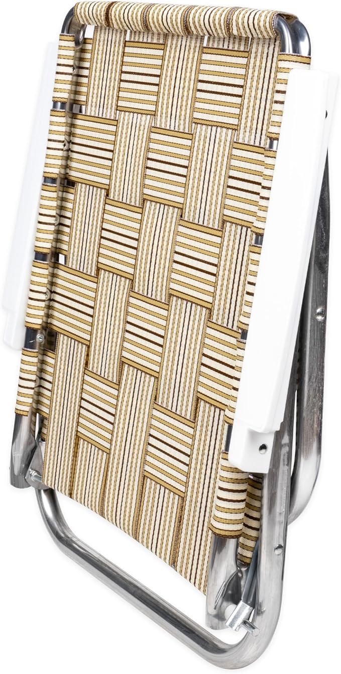 Lawn Chair USA Folding Aluminum Outdoor Patio Lawn Chair | Heavy-Duty Webbed Chairs for Camping, Sports, Beach, Yard & Tailgating | Lightweight Portable | High Back Beach Chair - Tan Stripe