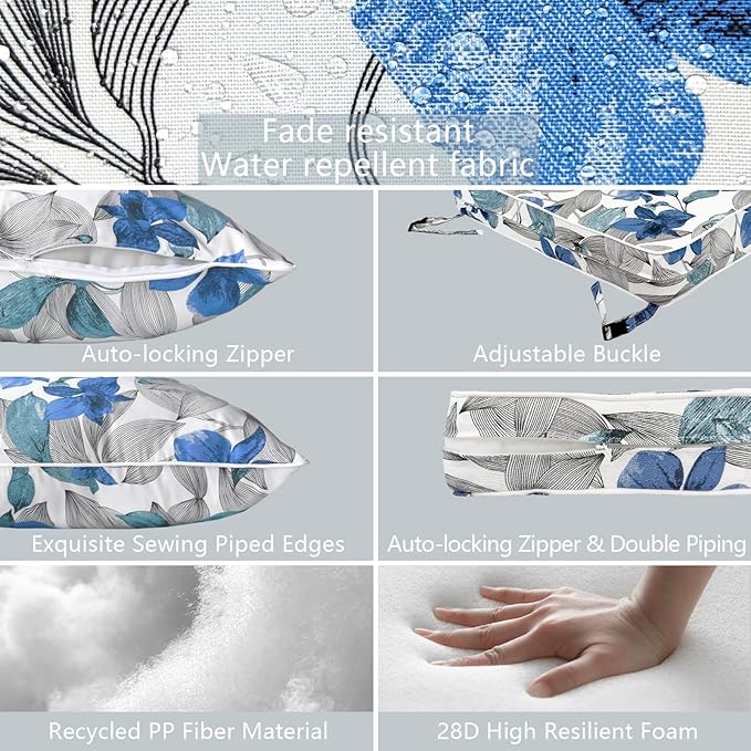 - ⭐Material: Made of 100% durable polyester fabric and soft filling material. It’s water repellent and fade-resistant. Won’t fading under the direct sunlight over 500 hours. Cushions are filled with 28D high resilient foam, overstuffed construction for enhanced comfort and longevity.