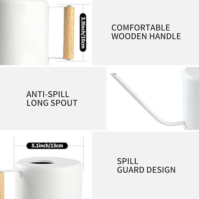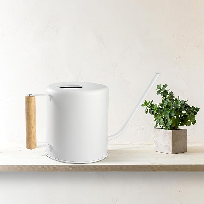 1.5 Liter Watering Can for Indoor Plants, House Plants, Flower Watering, Outdoor Plants - Small Metal Watering Can with Long Spout (White)