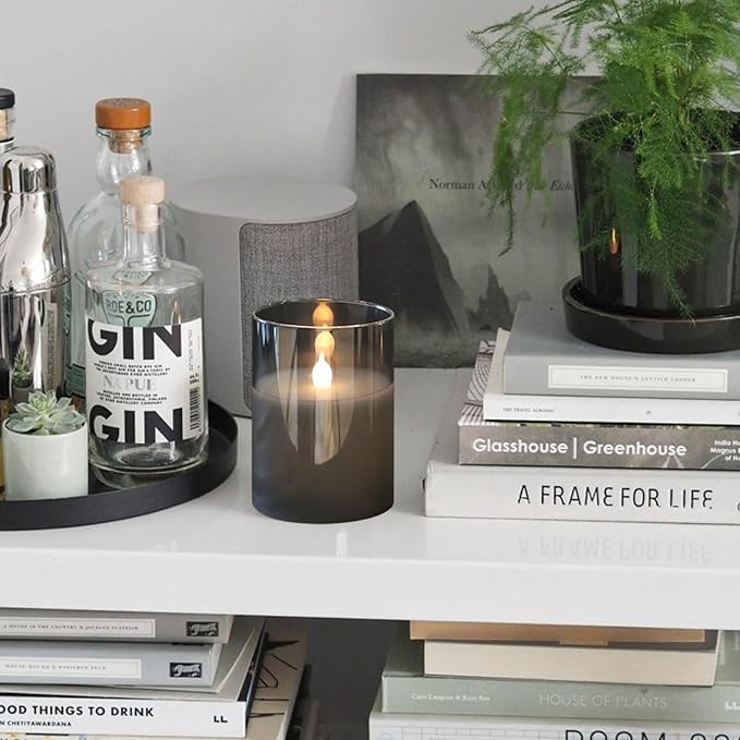 - [3D Wick Battery Candles Flickering] Flickering LED candle with a 3D wick design inside the glass is made of real wax, Battery-operated candles with flickering flame add to the realism and the warmth of the electric candle flickering. When the light of this candle reflects on the glass, it looks like a real candle burning.