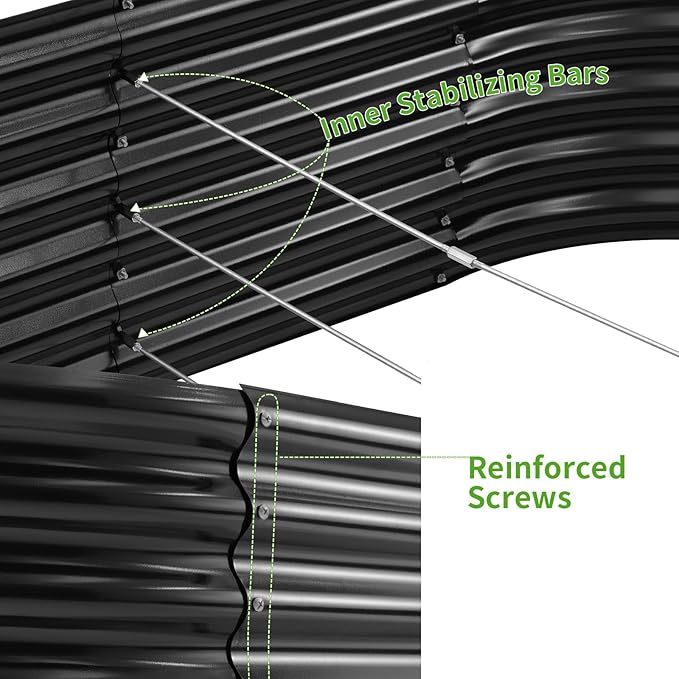 - Extra large capacity: The total dimensions of the raised garden bed are 96 "L x 48 "W x 18 "H and holds 359 gallons of soil. The extra large capacity provides plenty of growing space for planting vegetables, fruits, flowers and other plants.