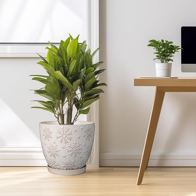 - Stylish Appearance: Our ceramic planter has a white main colour and a beautiful embossed snowflakes pattern on the surface, elegant appearance making it ideal for home decor, garden decor and office decor