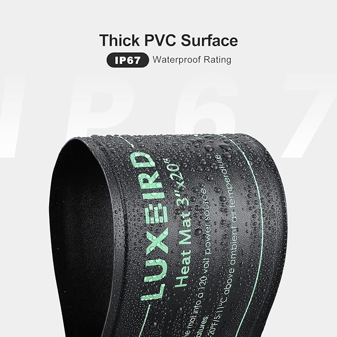 - Waterproof PVC Mats: The master heating mat has a 5.9 feet long power cord, making it more convenient and flexible to use. All mats are made of PVC material, making them waterproof, dust-proof, and easy to clean