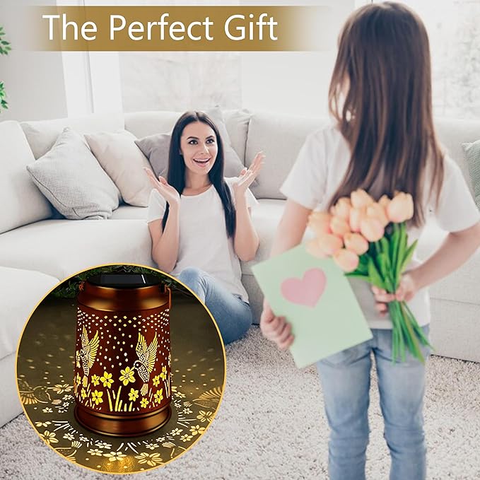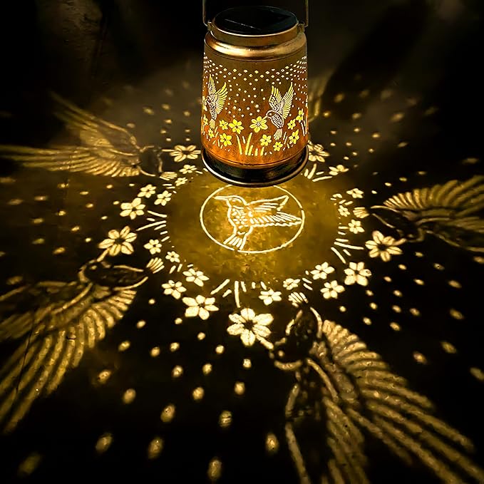 - Perfect Garden Decorative Design: The solar lanterns outdoor waterproof hanging,solar lantern lights retro appearance, with bronze color and hollow out metal veneer, and hollow out metal veneer, the solar outdoor lanterns casts bright and led warm light in darkness, accompanied by gorgeous and graceful hummingbird and flower patterns, adding a beautiful atmosphere to the surrounding environment.