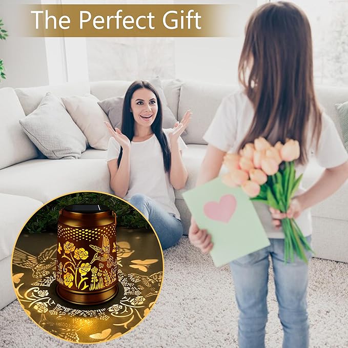 - [Enchanting Vintage Design] Antique bronze hummingbird solar lantern features laser-cut rose hummingbird & butterfly motifs, casting mesmerizing shadow patterns when illuminated. The retro copper finish blends Victorian elegance with modern solar tech, perfect for garden/patio ambiance.