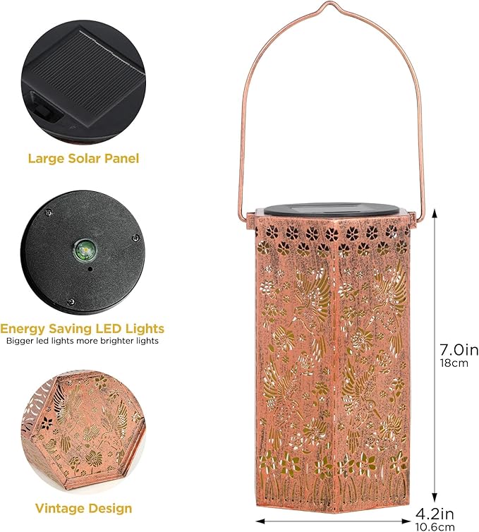 - Perfect Garden Decorations: Kyoryuger solar lantern can project unique and beautiful patterns in a dim environment, creating a gorgeous and warm atmosphere to bring life and fun to your garden and attract your family or friends. The unique hollow out design and beautiful antique bronze color give it an artistic touch, perfect for decorating gardens, backyards, corners, Outside, sidewalks and many other scenes.