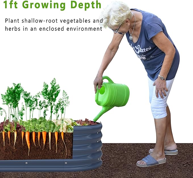 - Size: 48"(L) x 20"(W) x 12"(H),0.7mm Galvanized planter raised bed provide outdoor sufficient space to grow vegetables,flowers,galvanized garden bed,Two can be stacked and assembled together