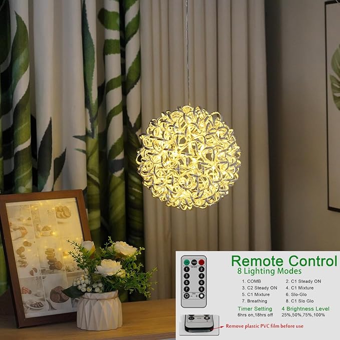 - 【Memory and Timer Function Hanging Tree lights 】Design with memory function,Aluminum Balls Light outdoor could recover from the previous setting mode when you restart. 6 hours on 18 hours off for the timer function.