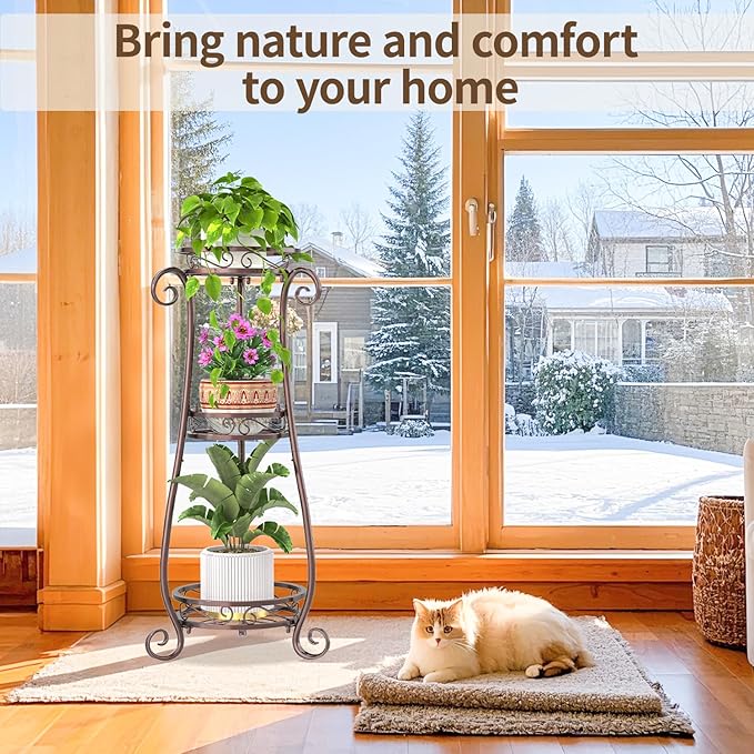 - 【Maximize Space Effortlessly】 Struggling with limited space? This 3 tier metal plant stand maximizes every inch of your living room, balcony, or narrow corner. Enjoy a clutter-free, organized space without sacrificing your love for plants.