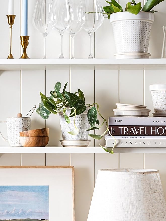 - Decor Living Space: Discover a cute embossed design ceramic pots –4.9 inches in diameter and 3.9 inches top opening, good for small and medium sized plants and flowers such as succulents, African violet, vanilla, basil, etc. These ceramic flower pots add a touch of green to tables, windowsills, balconies, or bookshelves. The delicate balance of embossed design and botanical vitality converges, creating an atmosphere of unparalleled grace and visual delight