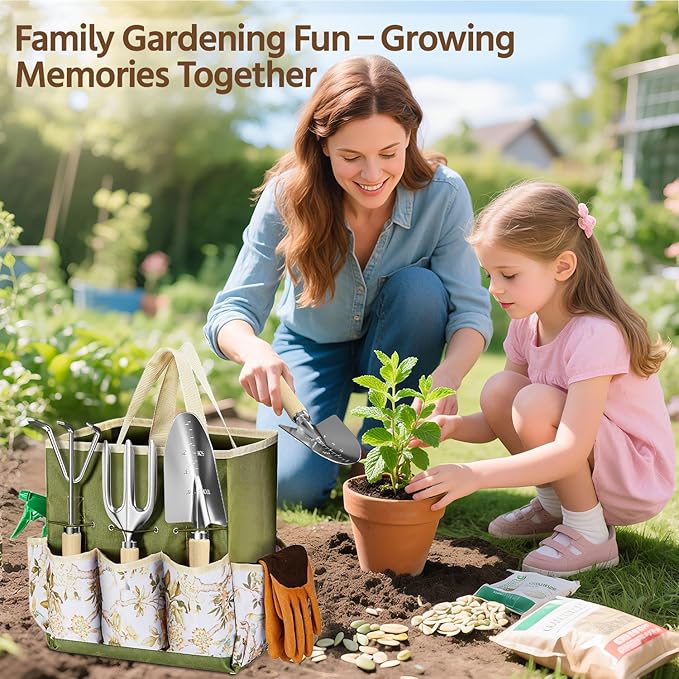 - 【Gardening Fun for the Whole Family】Our garden tools are designed to be both strong and lightweight, making them easy for anyone to carry and use. From young eager to dig in the dirt to grandparents sharing their wisdom, everyone can join in and enjoy the simple pleasure of gardening together.