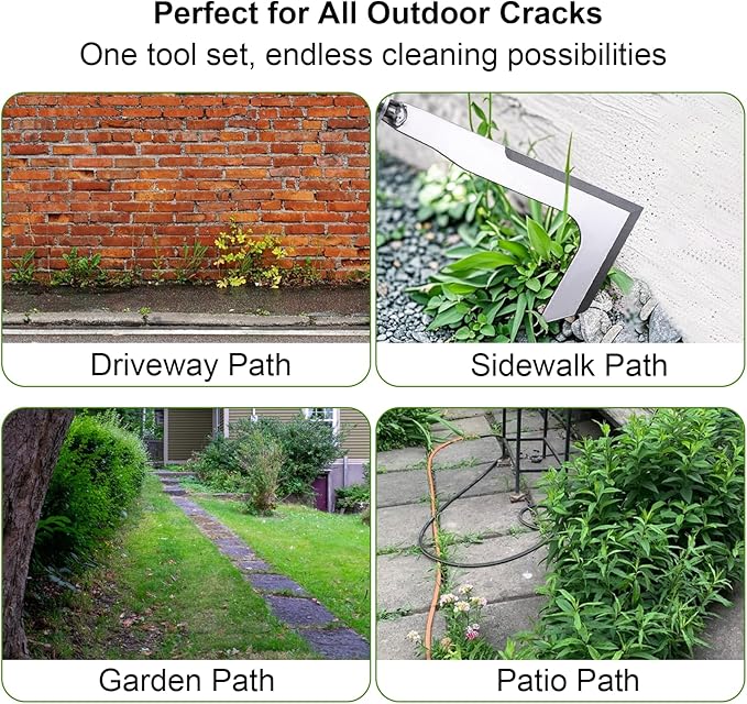 - 【Efficient Weed & Moss Removal for Outdoor Surfaces】Keep your outdoor spaces spotless with this weed puller tool for cracks. Works as a reliable patio crack weeder tool, moss scraper, and debris cleaner—perfect for maintaining weed-free sidewalks, pavers, and driveways
